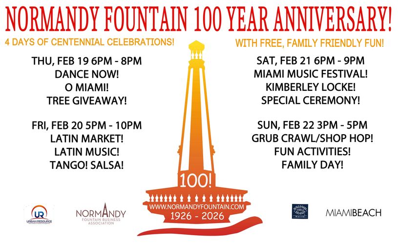 We are excited to invite you to our FREE EVENTS at the Normandy Fountain, Miami Beach!